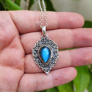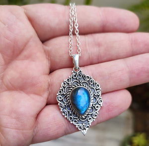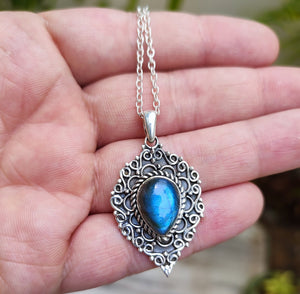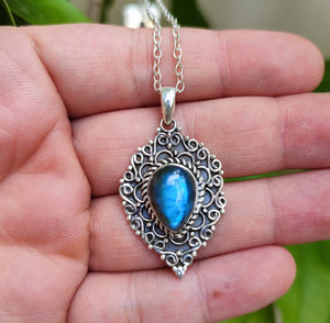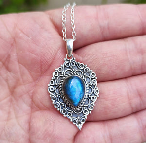 Natural Labradorite 925 Solid Sterling Silver necklace.