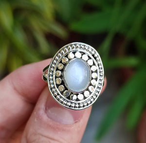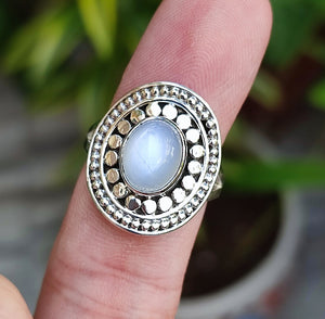 Natural Moonstone Oval 925 Sterling Silver Handmade Statement Women Ring Boho Jewelry Gift for her Birthday Anniversary Christmas Valentine