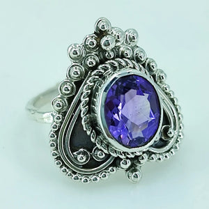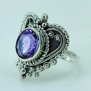 Navya Craft Amethyst Oval 925 Sterling Silver Ring for Women Size 4 to 13 Ring Purple Gem Stone Gemstone Handmade Boho