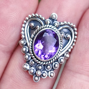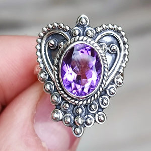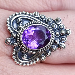 Introducing the exquisite Amethyst oval 8 x 10 mm Sterling Silver Handmade ring - a mesmerizing piece of jewelry that perfectly blends elegance and sophistication. Crafted with utmost care and precision, this stunning ring is sure to become a cherished addition to any jewelry collection and making it an ideal gift for yourself or a loved one on any special occasion.
