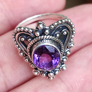 Indulge in the beauty of the Amethyst Sterling Silver Handmade Women's Ring and embrace its captivating charm. Elevate your style and revel in the compliments you'll receive with this exquisite piece of jewelry that celebrates the essence of femininity and sophistication. Order yours today and experience the enchantment of our stunning Amethyst cocktail ring.