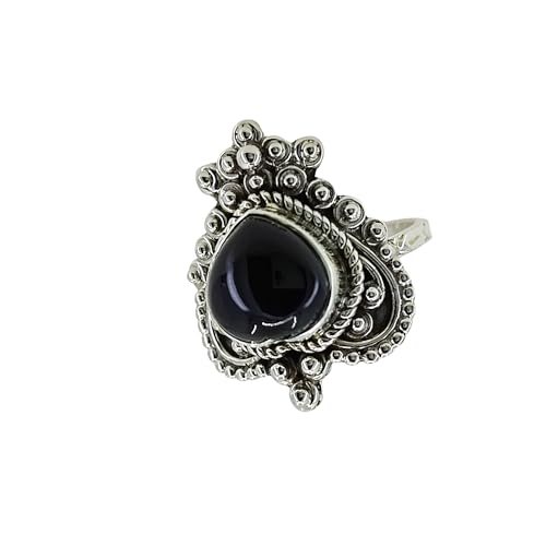 Accueil Navya Craft Black Onyx Heart Shape 10 mm 925 Sterling Silver Handmade Statement Women Ring, Black Gemstone Boho Ring, Gift