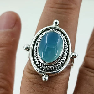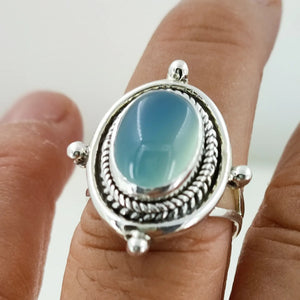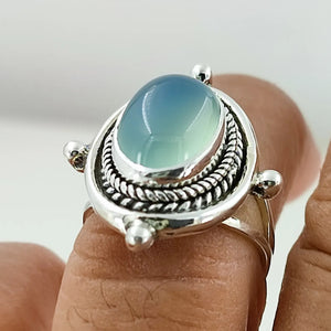 Navya Craft Chalcedony 925 Sterling Silver Statement Boho Ring Sizes 4 to 14 US, Yellow Gemstone Jewelry November Birthstone Christmas Anniversary Birthday Gift