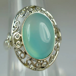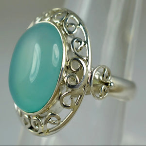 Navya Craft Chalcedony Silver Ring 925 Sterling Silver Handmade Jewelry Boho Ring Jewelry March Birthstone Month Custom US Ring Size 4 to 13
