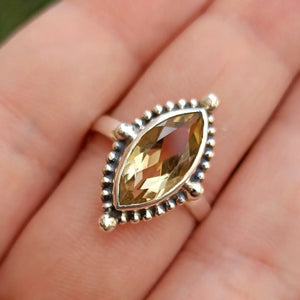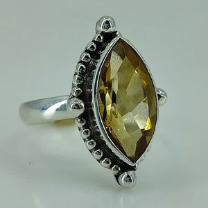 Navya Craft Citrine Marquise 925 Sterling Silver Statement Boho Ring Sizes 4 to 14 US, Yellow Gemstone Jewelry November Birthstone Christmas Anniversary Birthday Gift