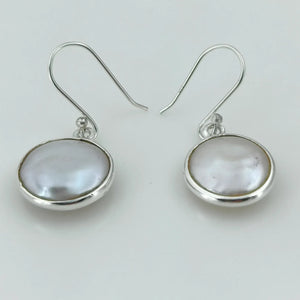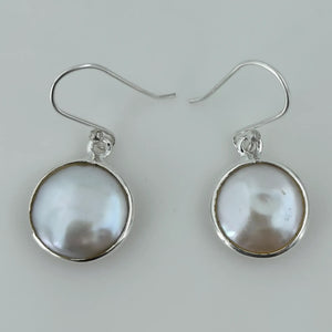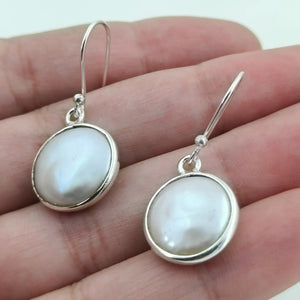 Accueil Coin Pearl Dangle Earrings, Sterling Silver Pearl Earrings, Handmade Freshwater Coin Pearl Jewelry, June Birthstone, Elegant Gift for Her