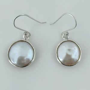 Coin Pearl Dangle Earrings, Sterling Silver Pearl Earrings, Handmade Freshwater Coin Pearl Jewelry, June Birthstone, Elegant Gift for Her