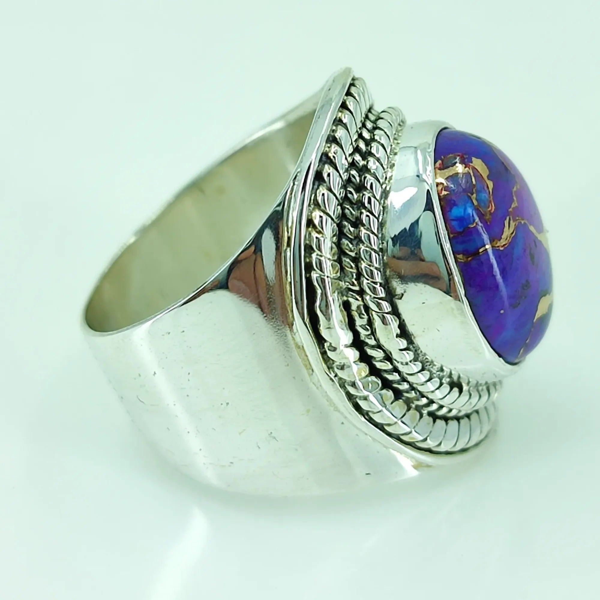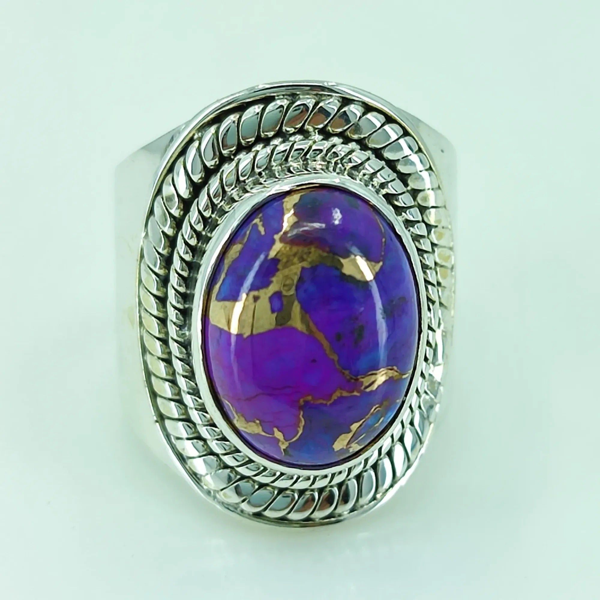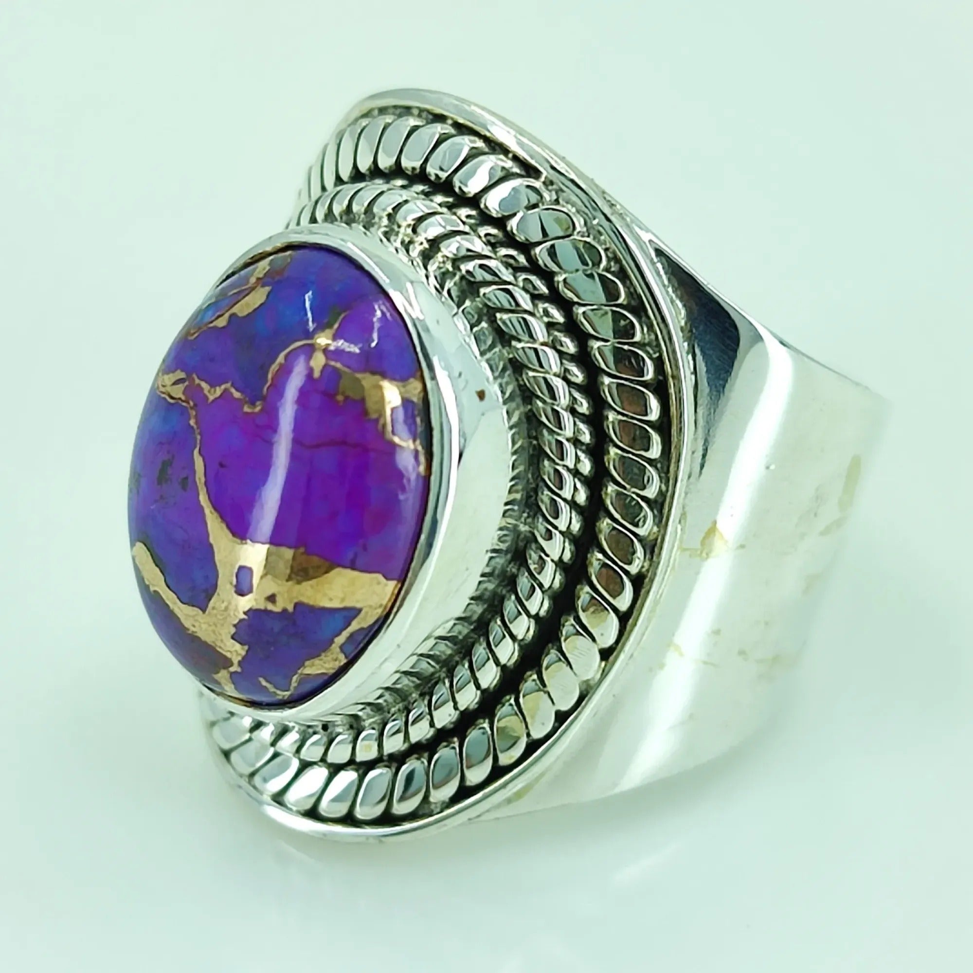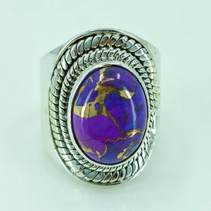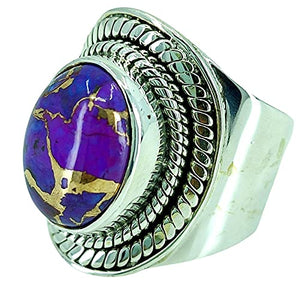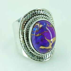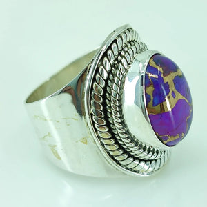 Purple Copper Turquoise oval Shape 925 Sterling Silver Handmade Ring - Boho December Birthstone Jewelry - Perfect Gift for Her Birthday Anniversary Christmas Valentine Day