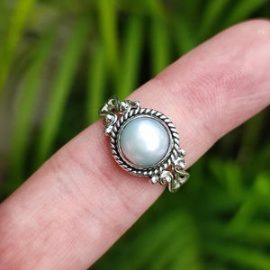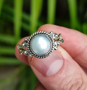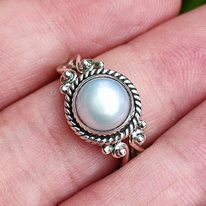 Pearl Ring, 925 Sterling Silver Statement Promise Ring For Women, Freshwater Pearl Handmade Boho Jewelry, June Birthstone, Gift for her