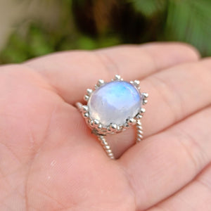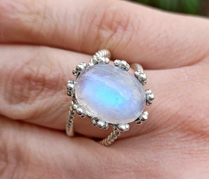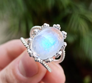 Stand out of the crowd with this lovely natural Rainbow Moonstone ring on your finger.