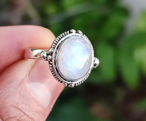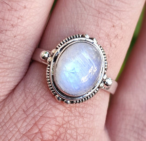Stand out of the crowd with this lovely natural Rainbow Moonstone ring on your finger.