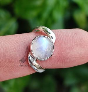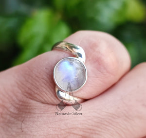 Rainbow Moonstone Sterling Silver Handmade Statement Ring Gift for her Anniversary Birthday Christmas Valentines Day Boho Gemstone Ring
