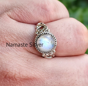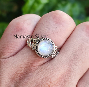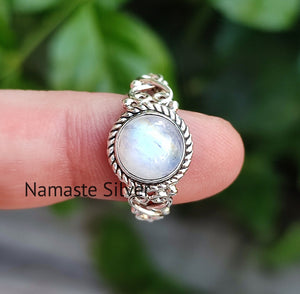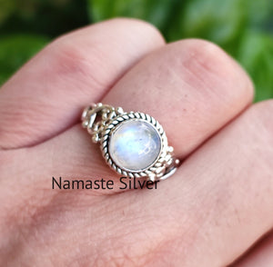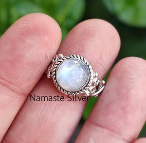 This stunning handmade ring features a genuine Natural Rainbow Moonstone set in 925 Solid Sterling Silver. Perfect for birthdays, anniversaries, Valentine's Day, Christmas, Mother's Day, or any special occasion. This elegant and timeless piece is sure to make a meaningful and memorable gift for that special woman in your life.