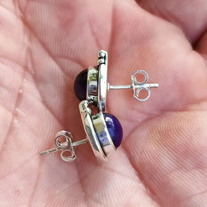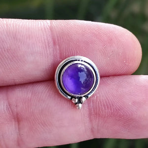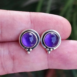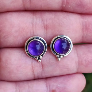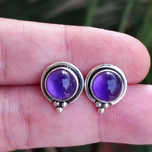 Casa Amethyst Stud Earrings, 925 Sterling Silver Handmade Round Stud Posts, Natural Purple Gemstone Jewelry, February Birthstone, Gift for Her