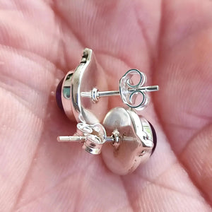 Amethyst Stud Earrings, 925 Sterling Silver Handmade Round Stud Posts, Natural Purple Gemstone Jewelry, February Birthstone, Gift for Her