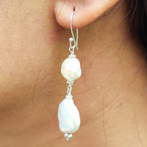 Baroque Pearl Sterling Silver Dangle Earrings Handmade Boho Jewelry Gift for her Birthday Anniversary Christmas Valentine's Day