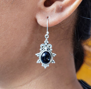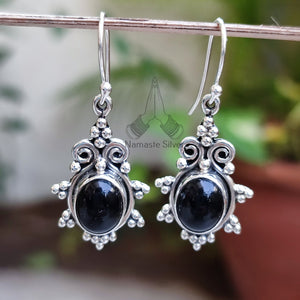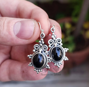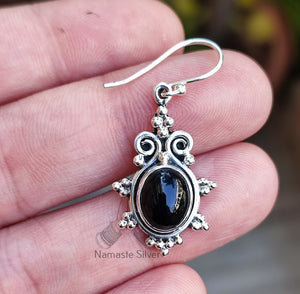 Casa Black Onyx Sterling Silver Handmade Dangle Earrings Boho Gemstone Jewelry Gift for her Birthday Anniversary Christmas Valentine's Day