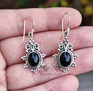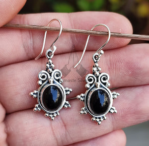 Black Onyx Sterling Silver Handmade Dangle Earrings Boho Gemstone Jewelry Gift for her Birthday Anniversary Christmas Valentine's Day