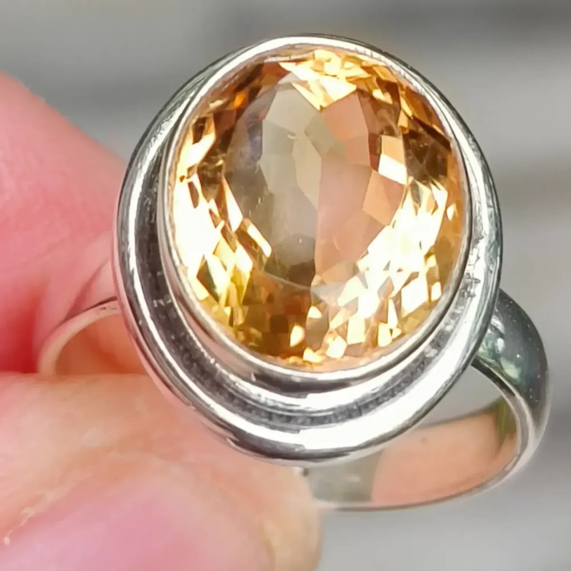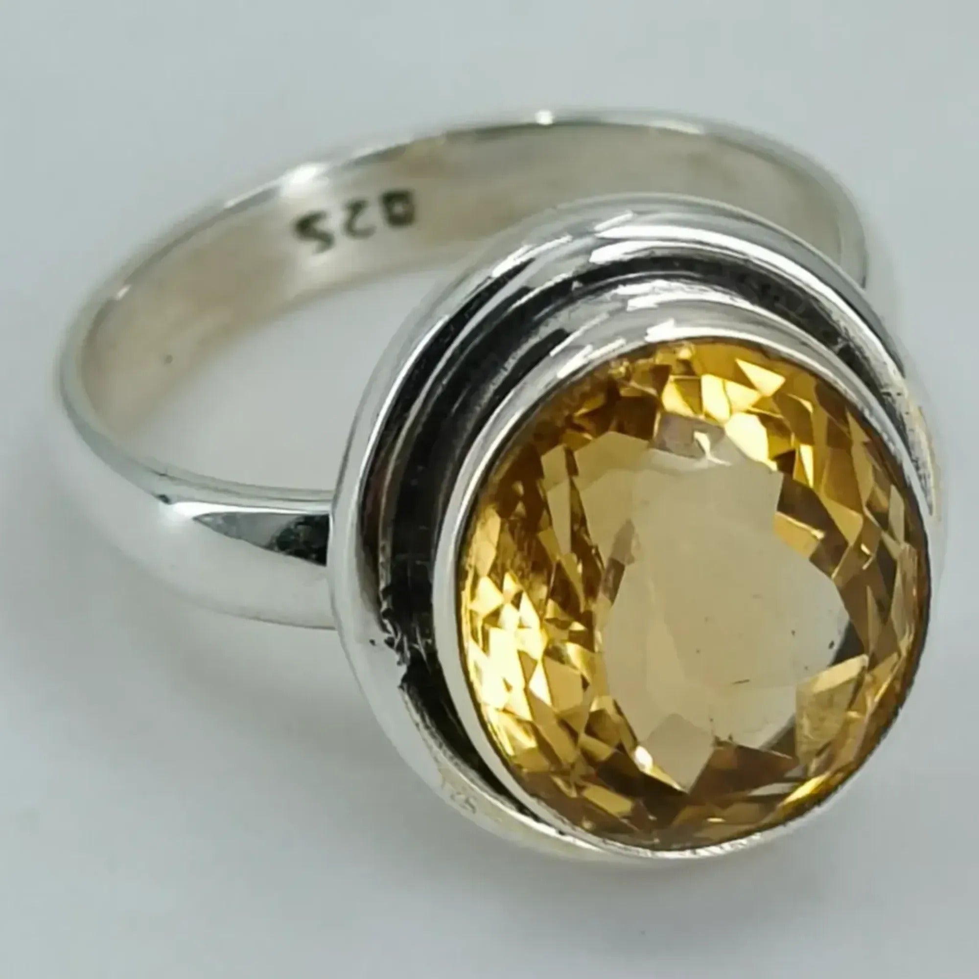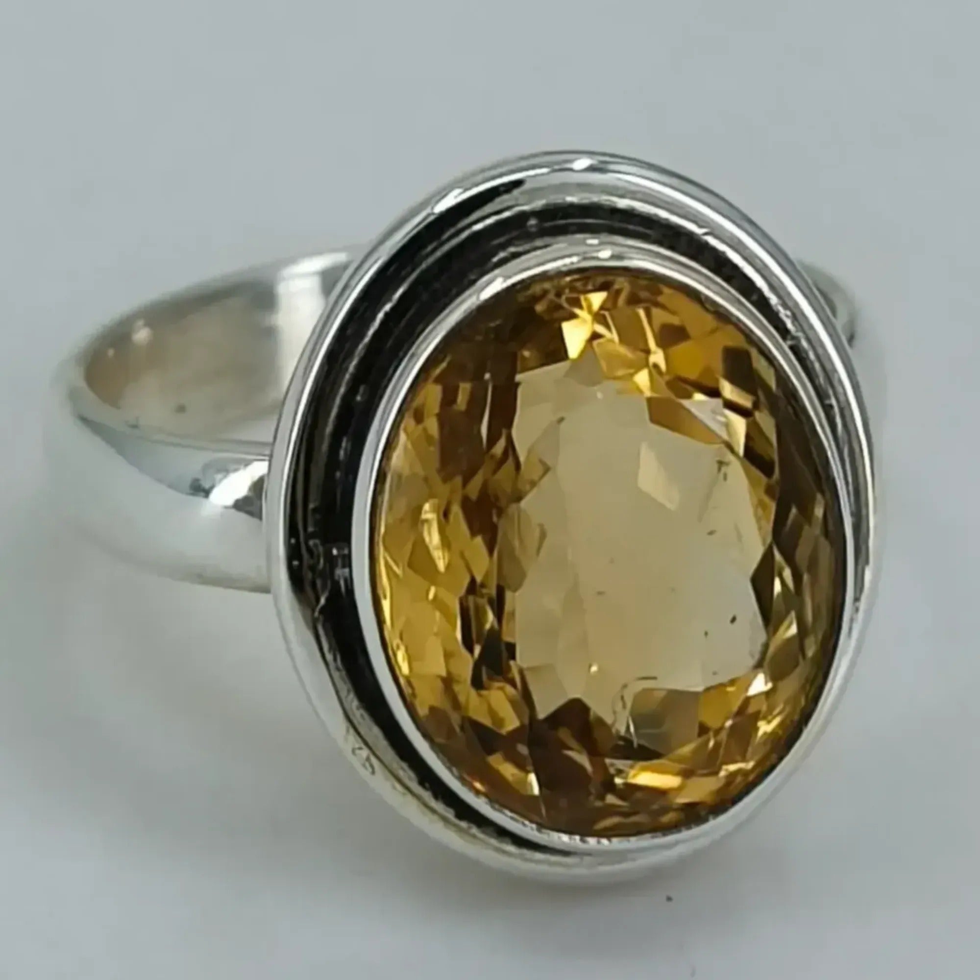 Elevate your style with this stunning handmade statement ring, featuring a sparkling natural citrine oval gemstone set in a polished 925 sterling silver band. The radiant citrine, known for its warm, sunny hues, exudes positivity and vitality, while the intricate silverwork adds a touch of elegance and sophistication. This captivating ring is perfect for any occasion, whether you're dressing up for a special event or adding a touch of glamour to your everyday look.