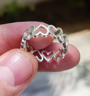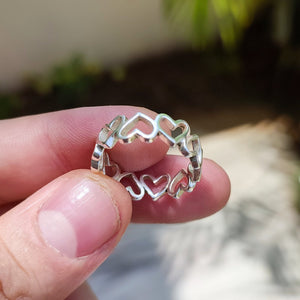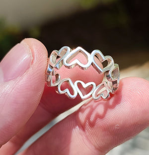 925 Solid Sterling Silver a circle of Heart to Heart connected elegant Handmade Ring band for Women and Girls. The endless circle of hearts creates a warm and romantic look, perfect for everyday wear or special occasions.