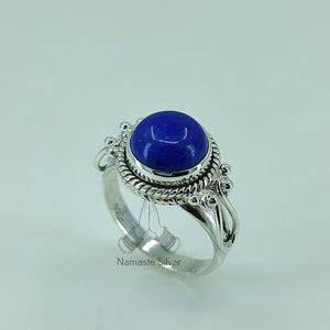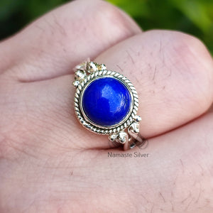 Lapis Lazuli Round Sterling Silver Handmade Statement Women Ring,  Lapis Lazuli Silver Ring, Dainty Minimalist Ring, Gift for her Birthday