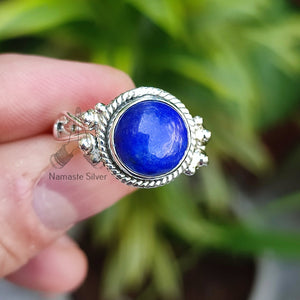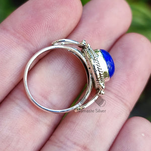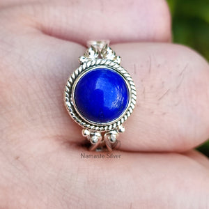 Spark your little one's imagination with this enchanting Natural Lapis Lazuli Round 925 Sterling Silver Handmade Statement Ring!