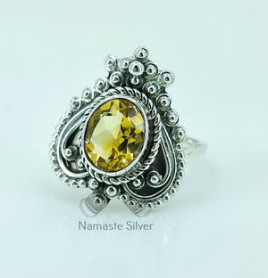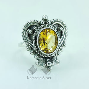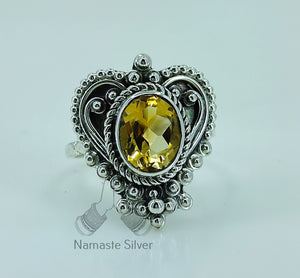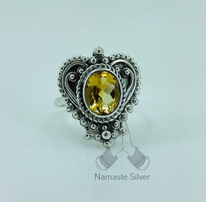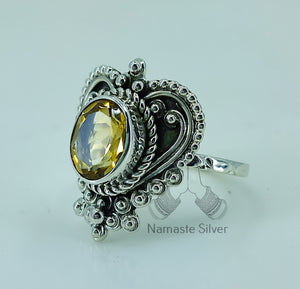 Natural Citrine Oval 925 Sterling Silver Handmade Statement Women Heart shape Ring, Yellow Gemstone, Gift for her, Citrine Silver Ring