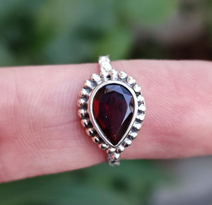 Natural Garnet Pear shape 925 Sterling Silver Handmade Women Cute Ring, Garnet Gemstone Silver Ring, January Birthstone Ring, Gift for her