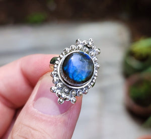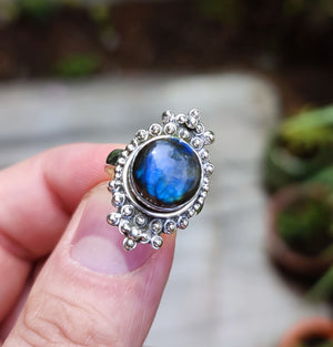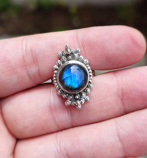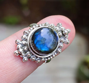Stand out of the crowd with this lovely natural Labradorite ring on your finger.