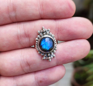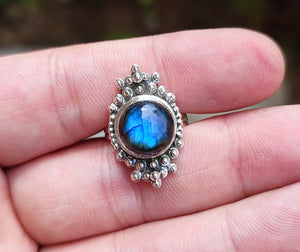 Natural Labradorite Round Sterling Silver Handmade Women Statement Ring, Labradorite Gemstone Silver Ring, Gift for her, Boho Silver Ring,