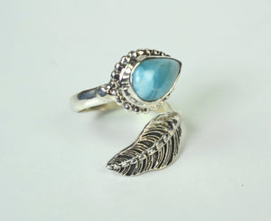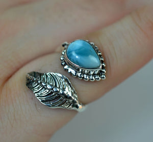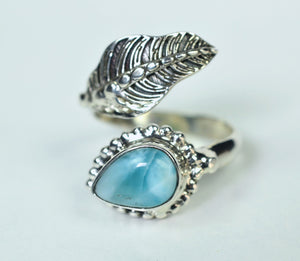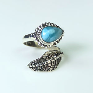 Stand out of the crowd with this lovely natural Larimar Leaf ring on your finger.