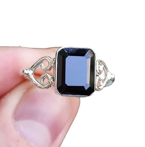 Navya Craft Black Onyx cushion 925 Sterling Silver Handmade Women Statement Boho Ring December Birth Gemstone Jewelry for Christmas Anniversary Birthday Valentine Day Gift wife Mother Sister