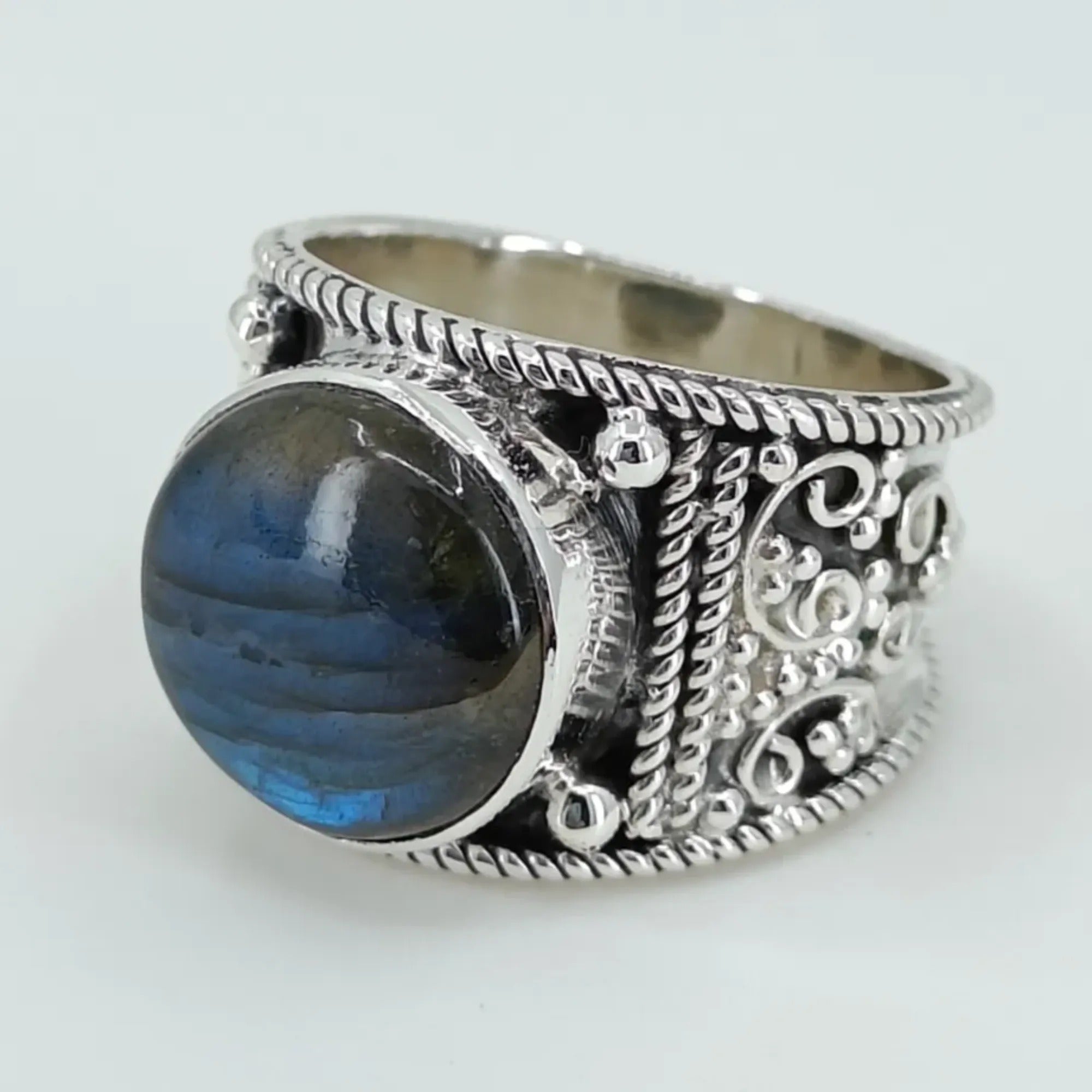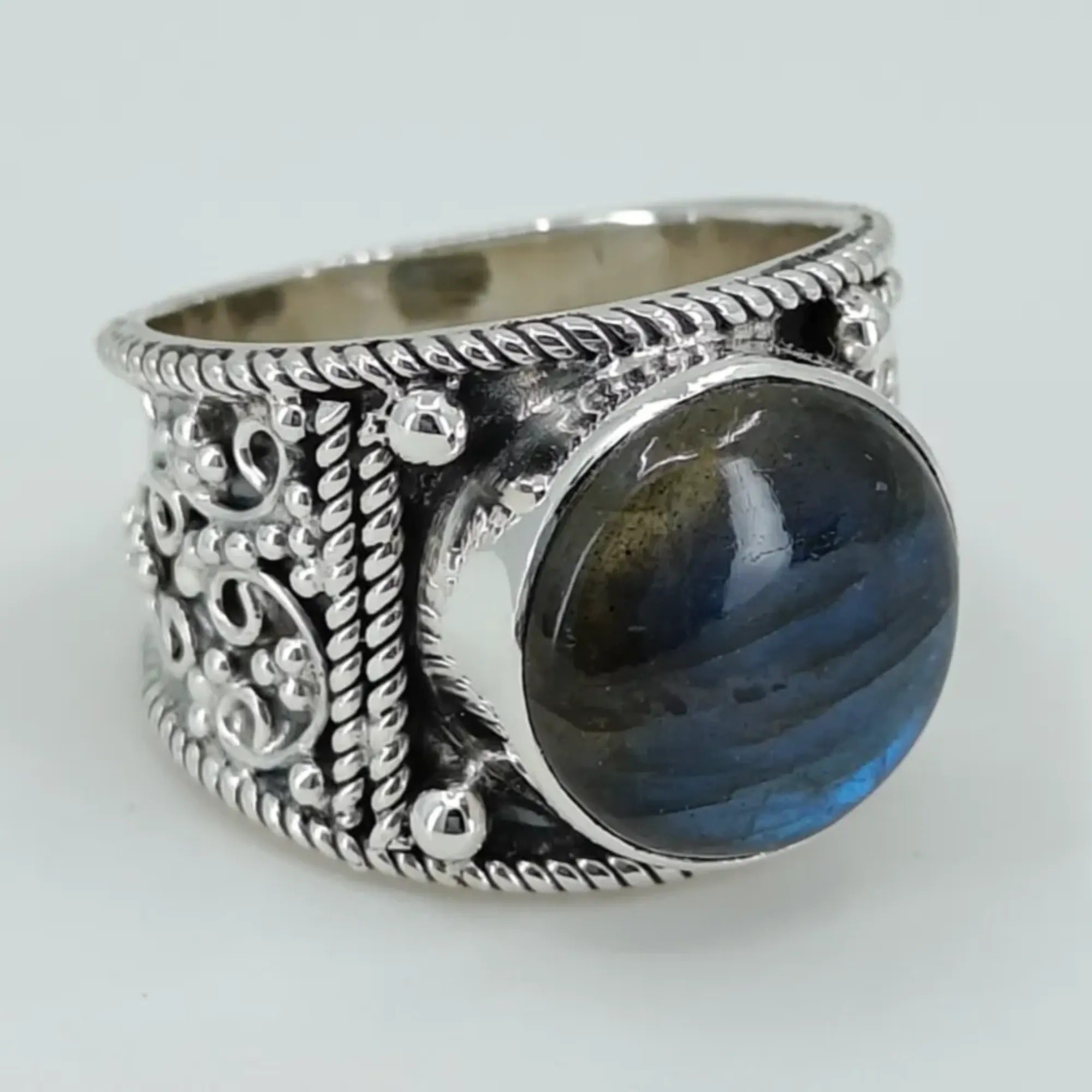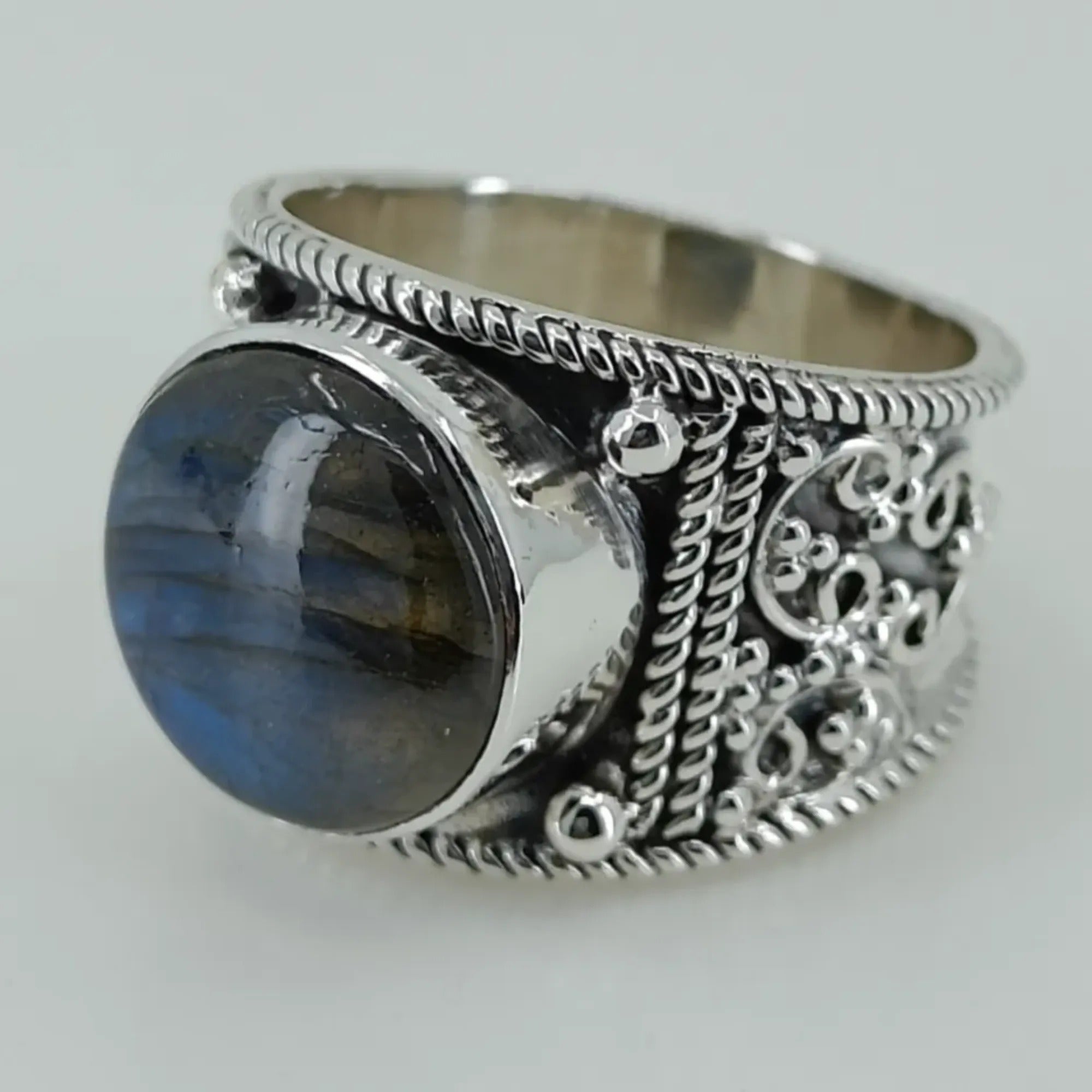 Labradorite Round Shape 925 Sterling Silver Handmade Ring - Boho November Birthstone Jewelry - Perfect Gift for Her Birthday Anniversary Christmas Valentine Day