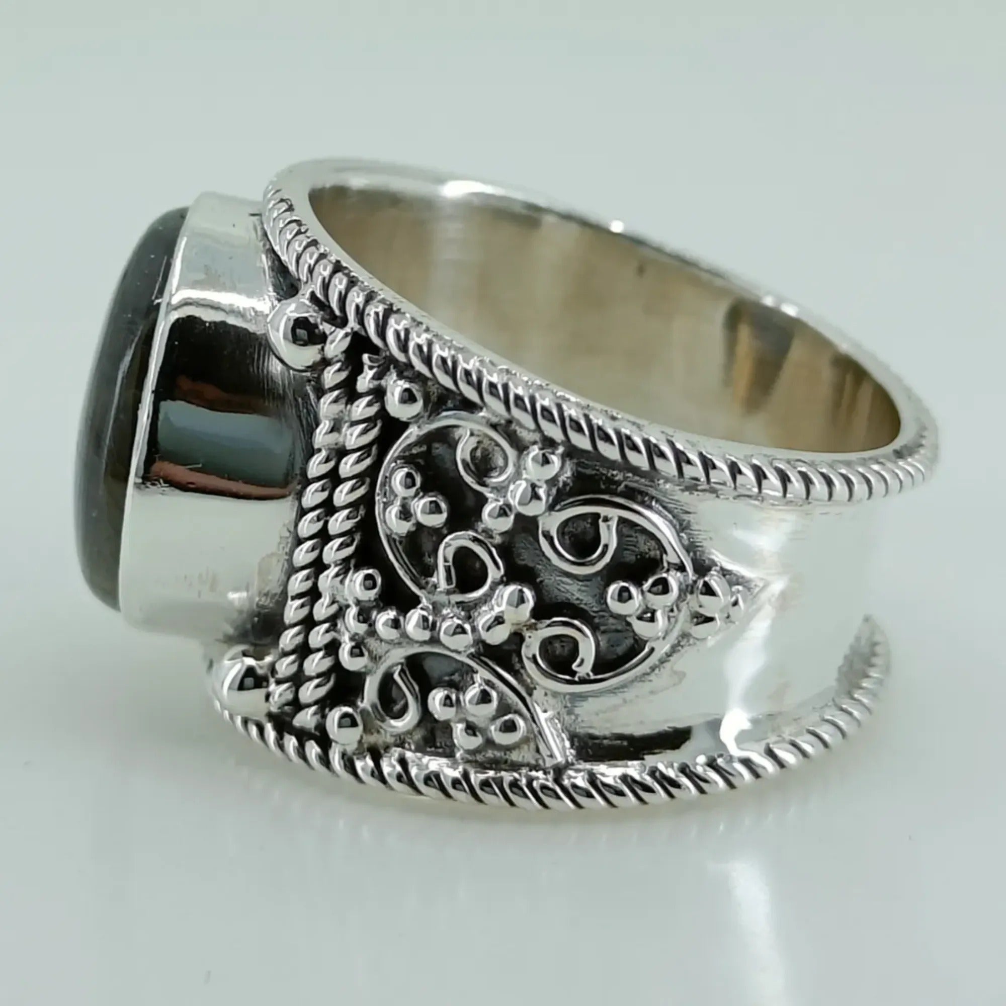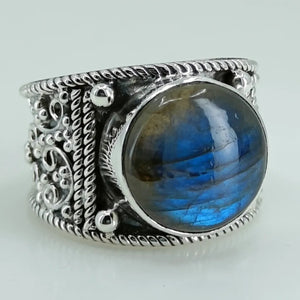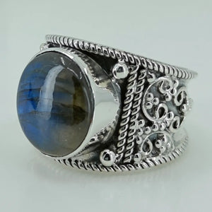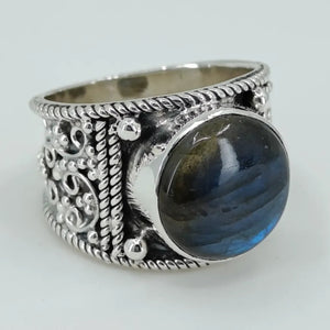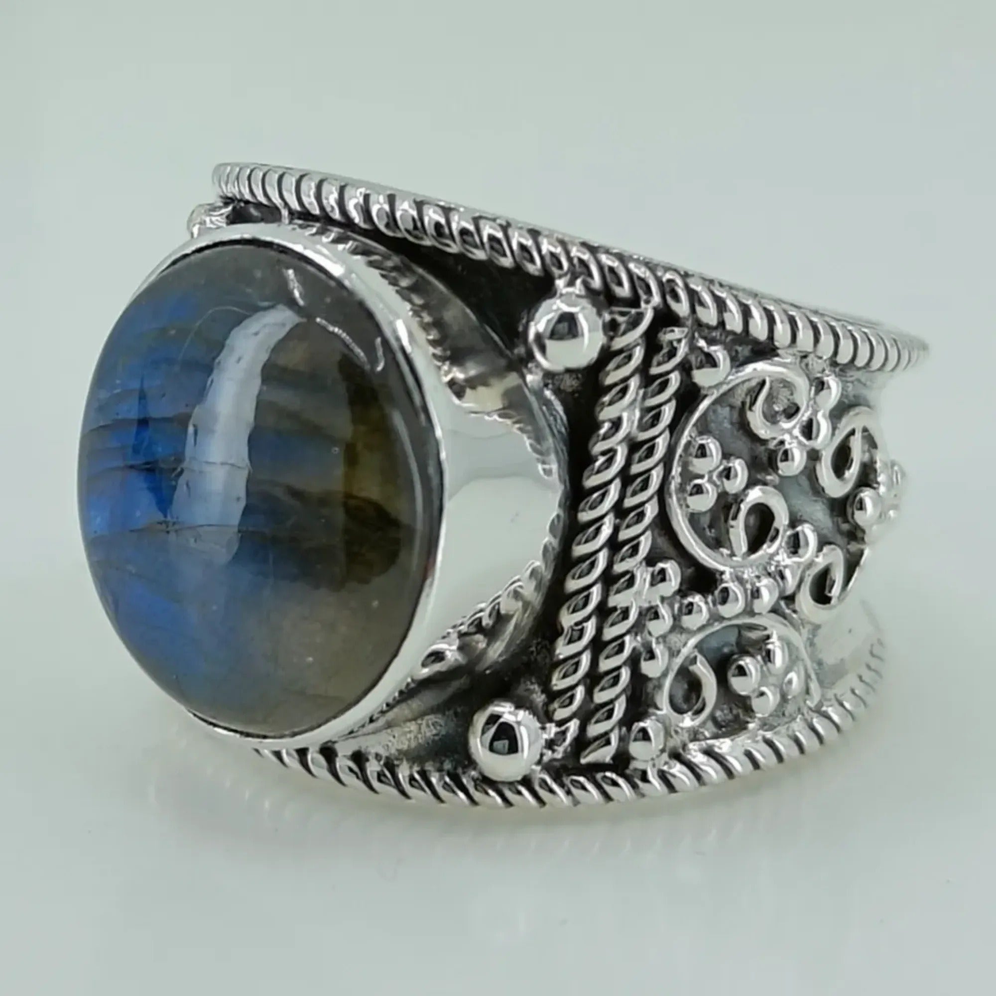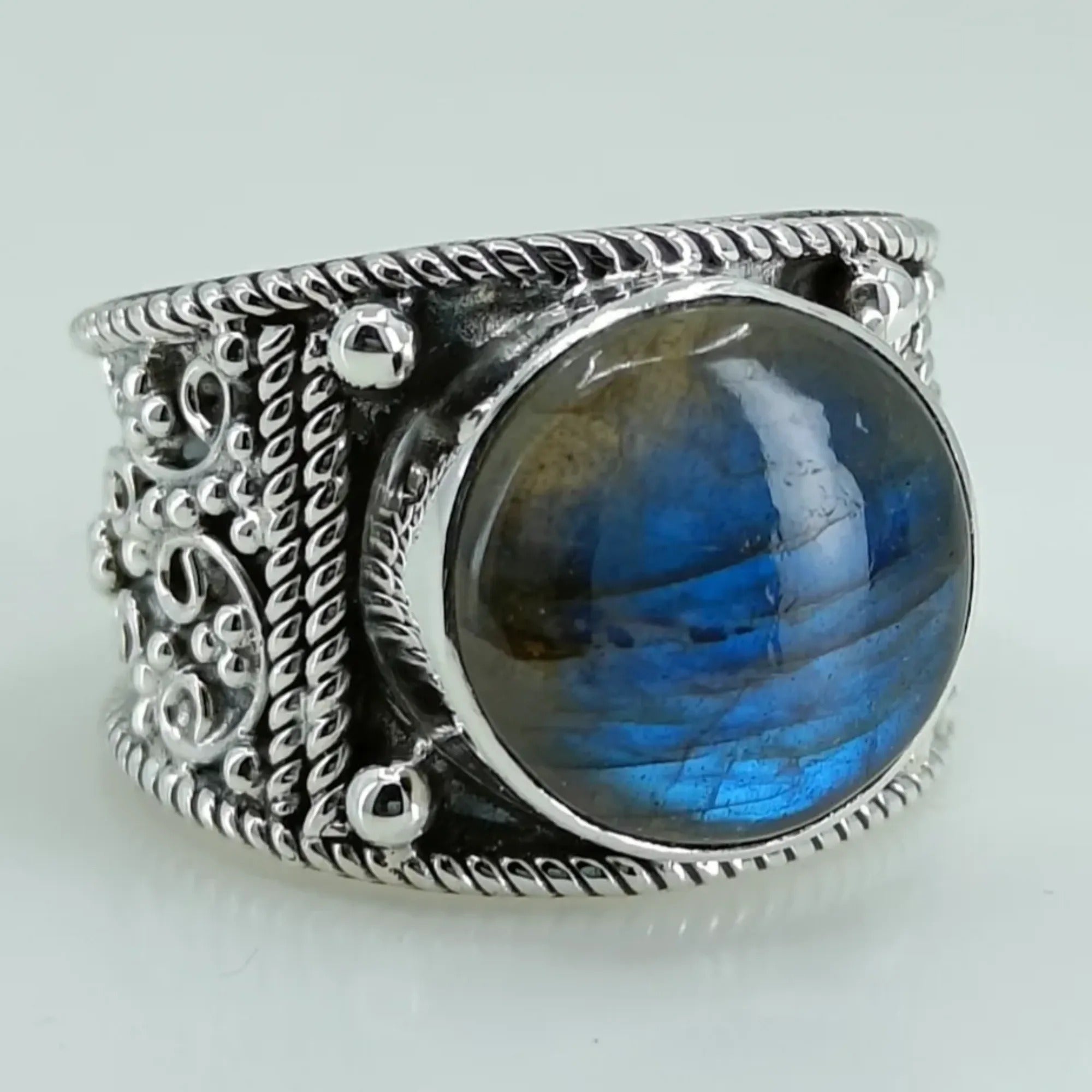Labradorite Round Shape 925 Sterling Silver Handmade Ring - Boho November Birthstone Jewelry - Perfect Gift for Her Birthday Anniversary Christmas Valentine Day