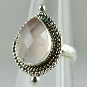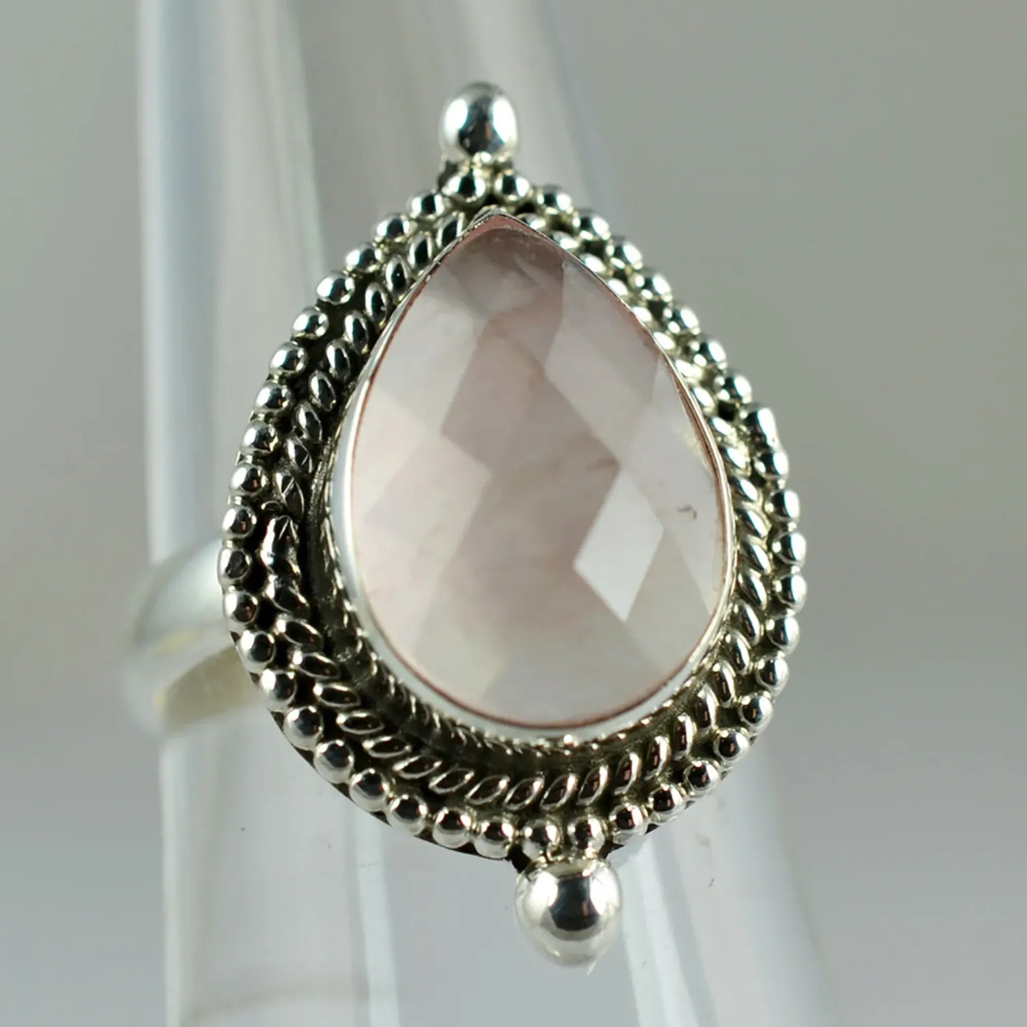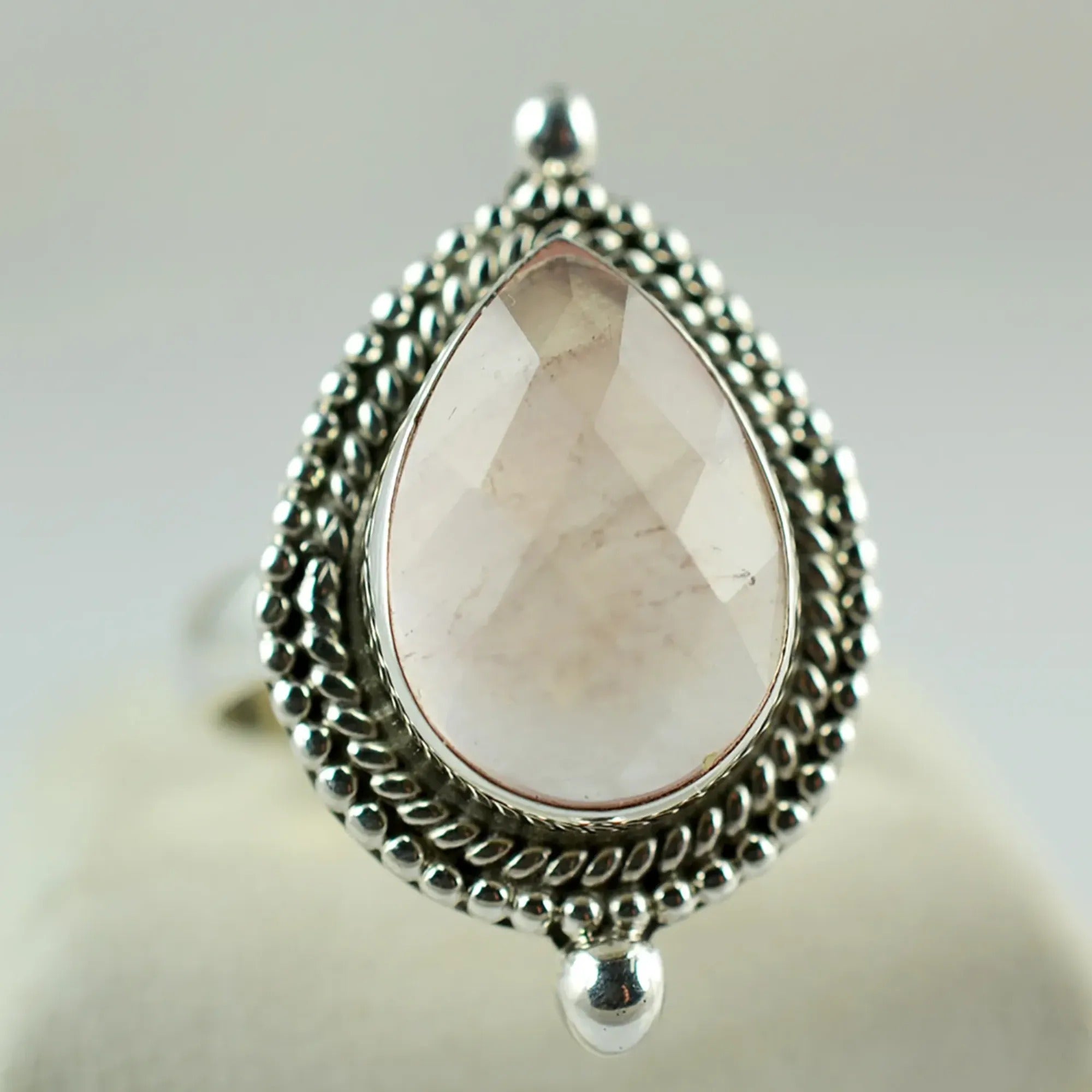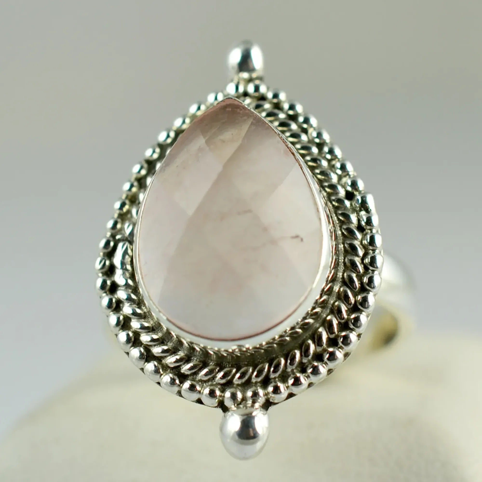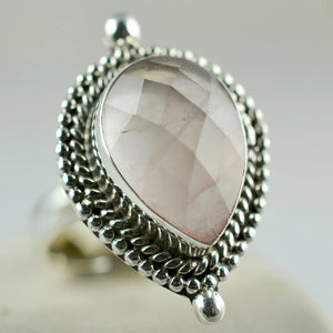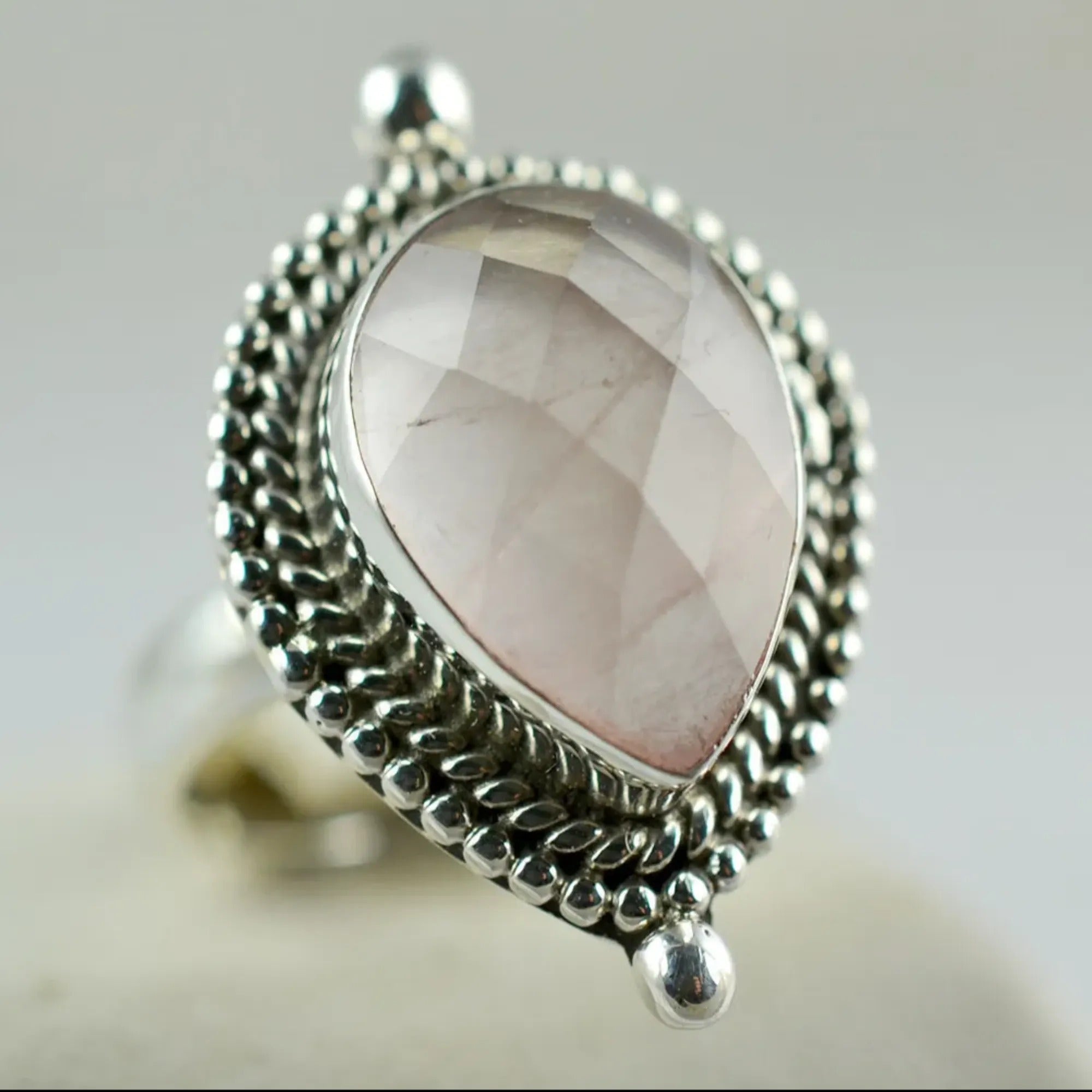 Rose Quartz Pear Shape 925 Sterling Silver Handmade Ring - Boho January Birthstone Jewelry - Perfect Gift for Her Birthday Anniversary Christmas Valentine Day