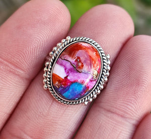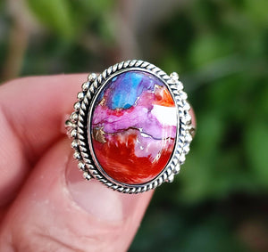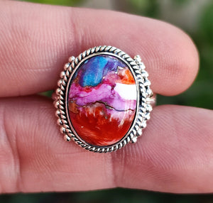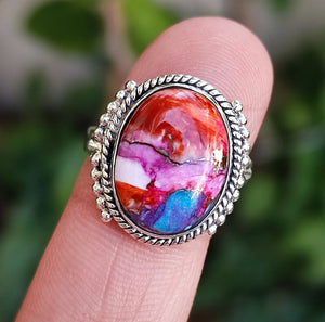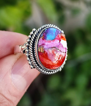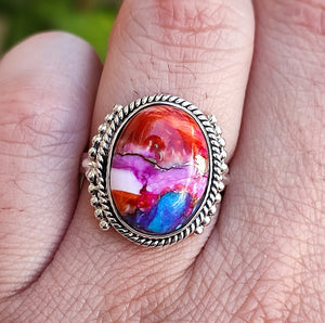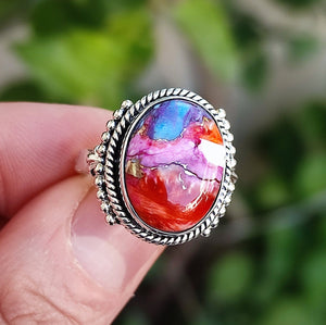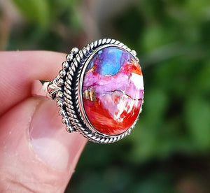 Oyster Copper Turquoise 925 Sterling Silver Handmade Women Statement Ring, Oyster Copper Turquoise Silver Ring, Boho Ring, Gift for her