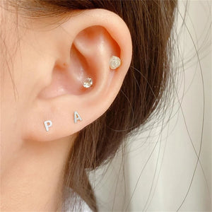18G Tiny Initial Stud Earrings for Women Girls 925 Sterling Silver Hypoallergeni