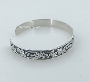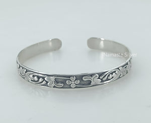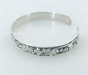 Embrace the beauty of nature with this stunning Floral Cuff Bracelet, handcrafted from gleaming 925 sterling silver. This adjustable bangle features a delicate hand-etched floral design, reminiscent of wildflowers swaying in the breeze. With its minimalist elegance and timeless charm, the Floral Cuff Bracelet is a perfect everyday accessory for the nature lover in your life.