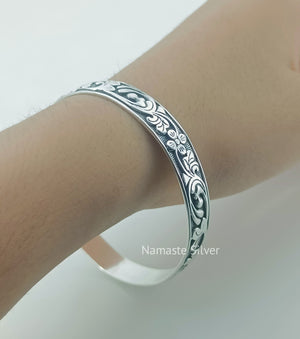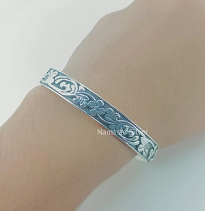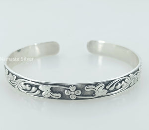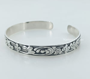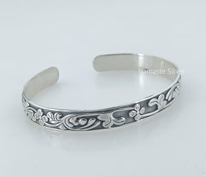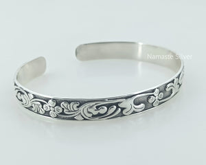 925 Sterling Silver Open Cuff Floral Bangle Adjustable Handmade Gift for Her Birthday Anniversary Wedding Christmas Valentine's Mother's Day