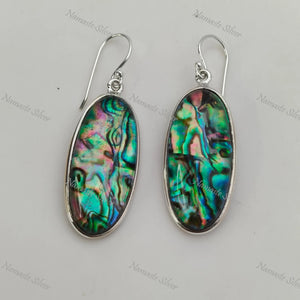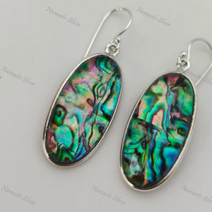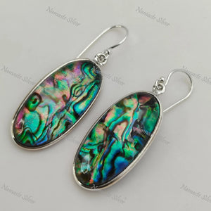 Abalone Shell Earrings, 925 Sterling Silver Dangle Drop Earrings, Natural Abalone Oval Doublet Handmade Jewelry, Blue Paua Shell Earrings