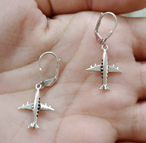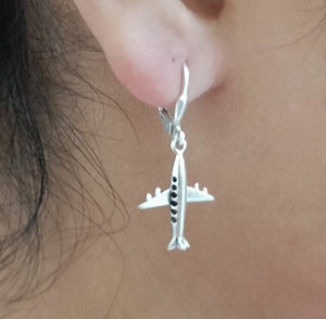 Aeroplan Earrings, 925 Sterling Silver Handmade Dangle Earrings, Minimalist Gift for Travelling Lovers Pilots Aviation Airplane Crew Staff