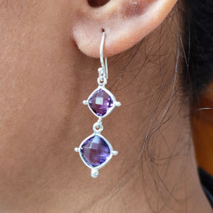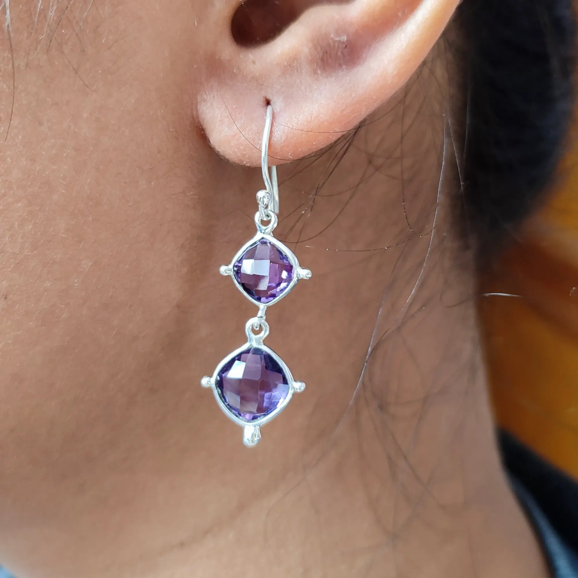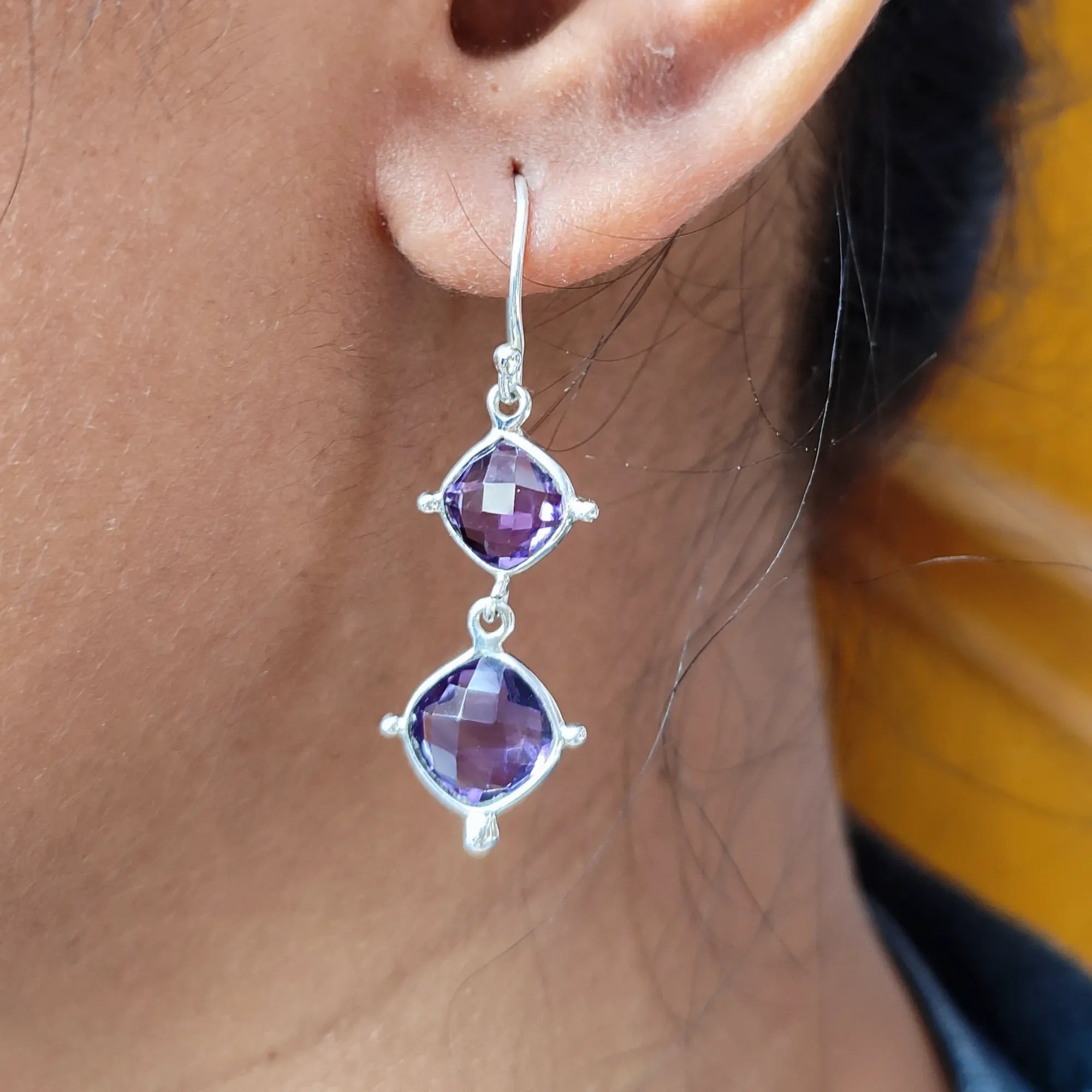 Amethyst Dangle Earrings, 925 Sterling Silver Handmade Earrings, Natural Purple Gemstone Cushion Briolette Earrings, Gift for Her