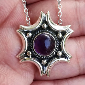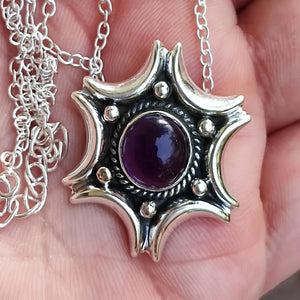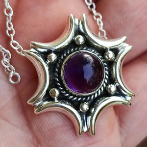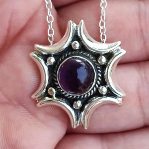 Amethyst Stone Necklace | Handmade 925 Sterling Silver Boho Jewelry | Natural Purple Gemstone Pendant | February Birthstone | Gift for Her