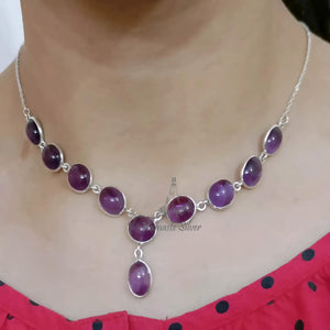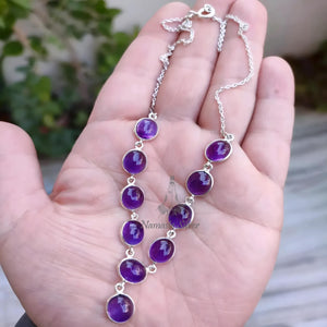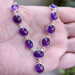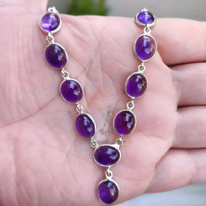 Amethyst Necklace, 925 Sterling Silver Y Necklace, Natural Purple Oval Gemstone Handmade Jewelry, February birthstone, Elegant Gift for her