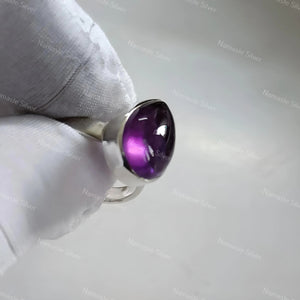 Home Amethyst Silver Ring - 925 Sterling Silver Handmade Statement Boho Women Ring - Gift for her Natural Purple Gemstone Jewelry