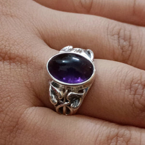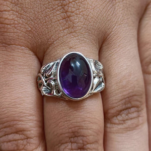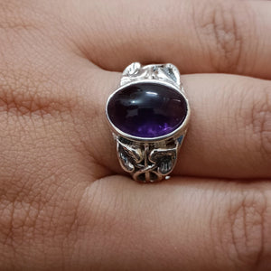 Amethyst Sterling Silver Ring Handmade Statement Natural Purple Gemstone Boho Gift for her Birthday Anniversary Christmas Valentine's Day