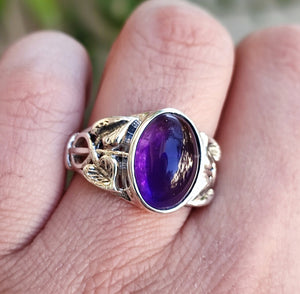 Imagine the mesmerizing beauty of the amethyst, its rich purple hues sparkling with every movement, adding a touch of enchanting mystery to your look. This versatile ring is perfect for adding a touch of whimsical elegance to any outfit, whether you're dressing up for a special occasion or simply expressing your unique style.