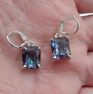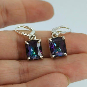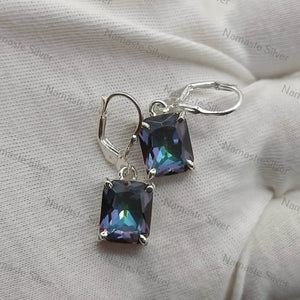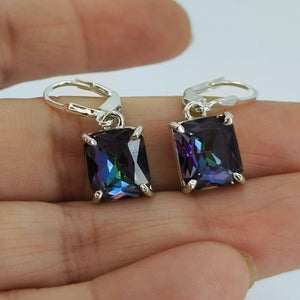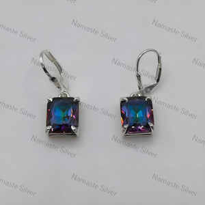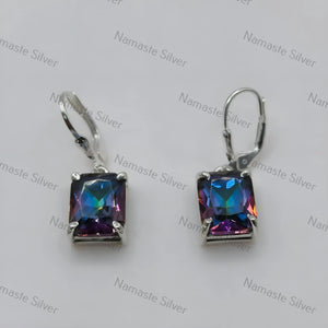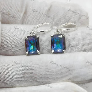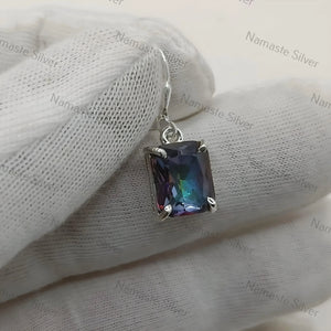 Aurora Mystic Topaz Earrings, Handmade 925 Sterling Silver Dangle Earrings, Octagon Gemstone Jewelry, November Birthstone, Gift For Her