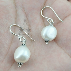 Pearl Dangle Earrings, 925 Sterling Silver Baroque Pearl Earrings, Handmade Freshwater Baroque Pearl Jewelry, June Birthstone Gift For Her