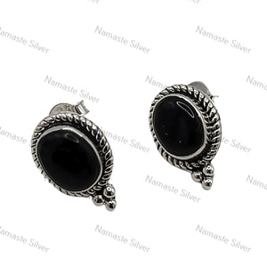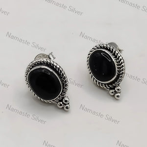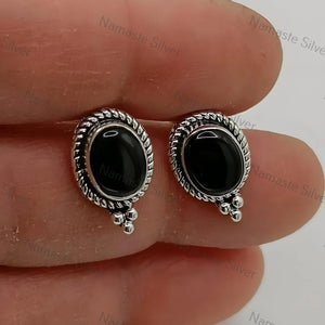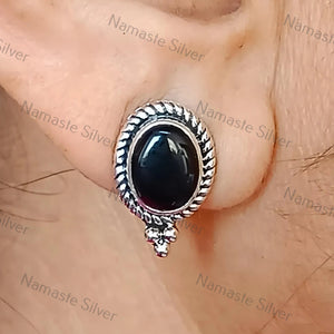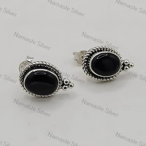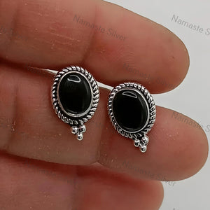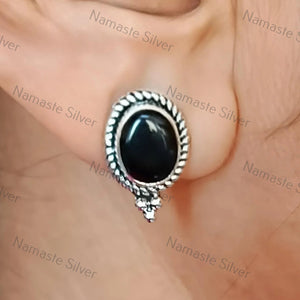 Home Black Onyx Earrings, 925 Sterling Silver Stud Posts, Natural Black Onyx Oval Handmade Gemstone Jewelry, July Birthstone, Unique Gift for Her